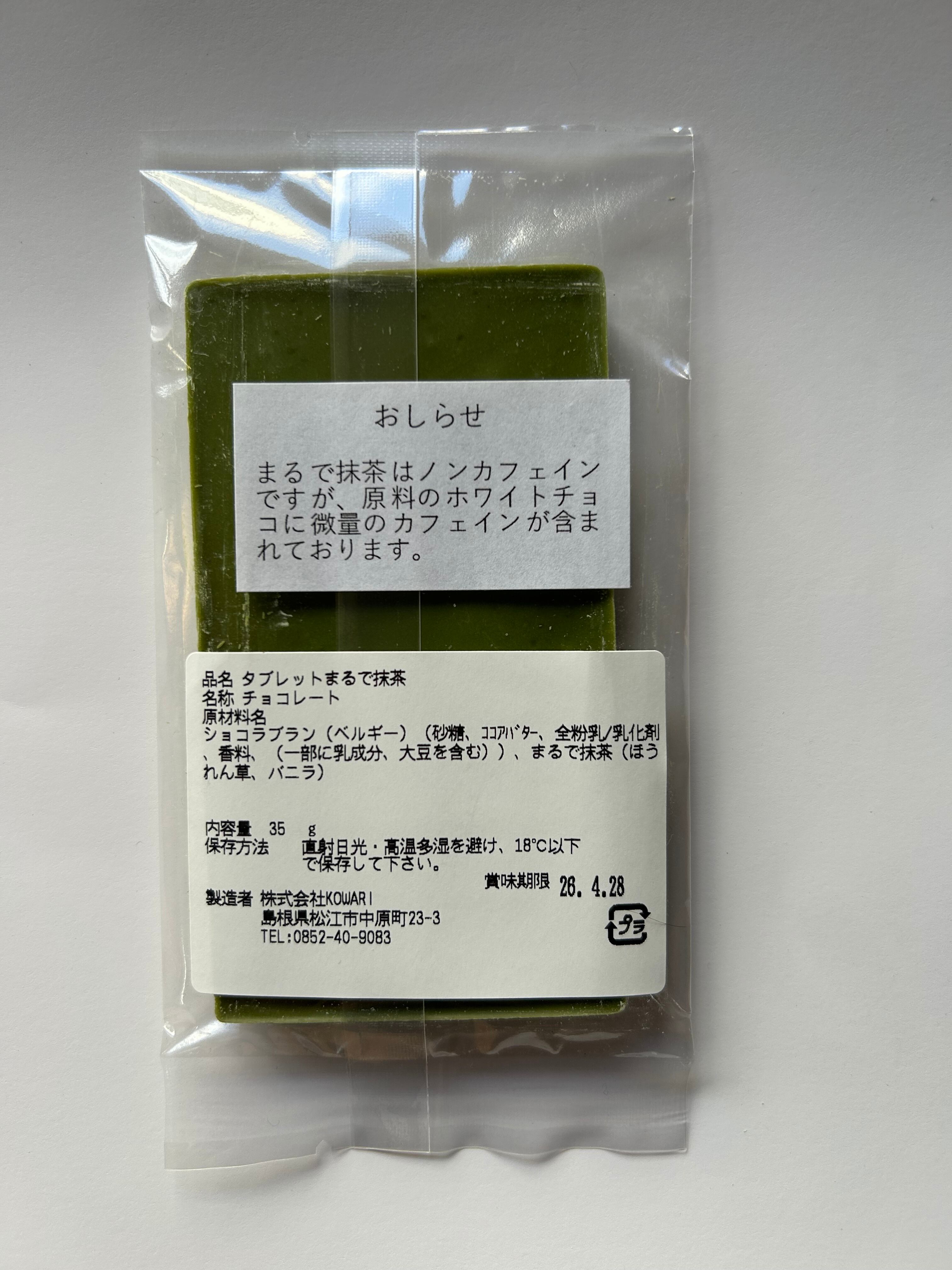 ※まるで抹茶はノンカフェインですが、ホワイトチョコレートに微量のカフェインが含まれますので、カフェインアレルギーの方はお気をつけください。